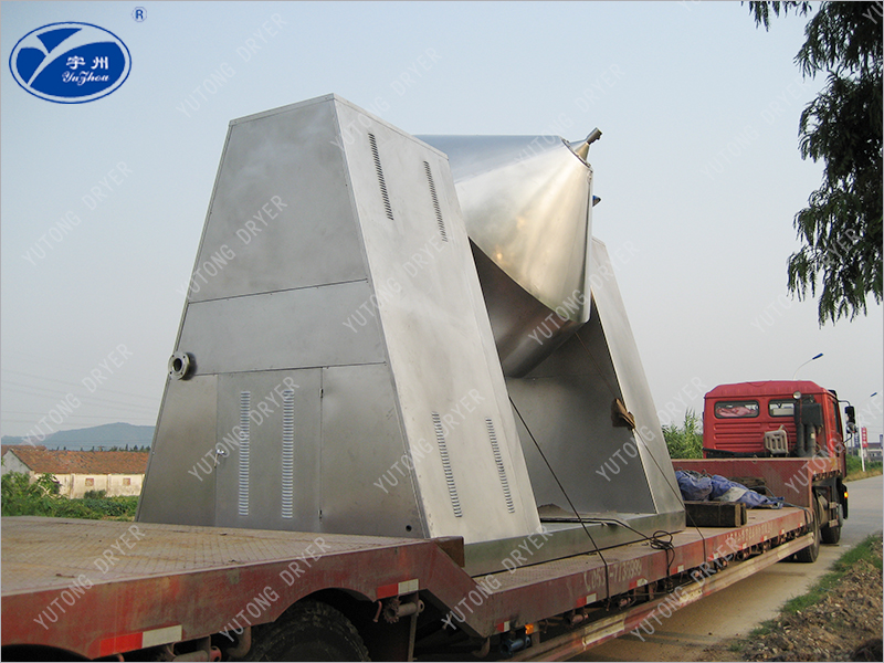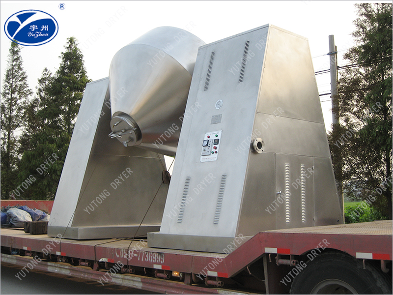 SZG series double-cone rotary vacuum dryer is a double-cone rotary tank. In the vacuum state, steam or hot water is heated into the jacket, and the heat is in contact with the wet material through the inner wall of the tank. The vapor evaporates after the wet material absorbs heat and is pumped away through the vacuum pump through the vacuum exhaust pipe. Because the tank is in a vacuum state, and the rotation of the tank makes the material constantly up and down, inside and outside, it speeds up the drying speed of the material, improves the drying efficiency, and achieves the purpose of uniform drying.