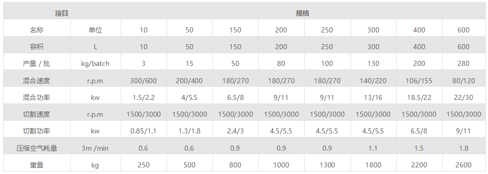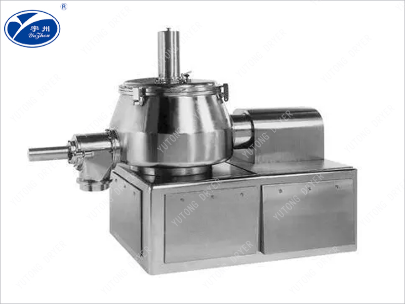 粉體物料與粘合劑在圓筒(錐形)形容器中,由底部混合漿充分混合成濕潤軟材,然后由側置的高速粉碎槳切割成均勻的濕顆粒。