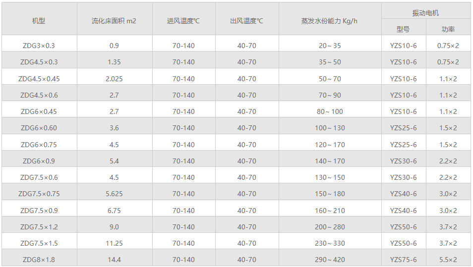 ZDG系列振動流化床干燥機廣泛適用于化工、輕工、醫藥、食品、塑料、糧油、礦渣、制鹽、糖等行業的粉料顆粒狀物料的干燥、冷卻、增濕等作業。