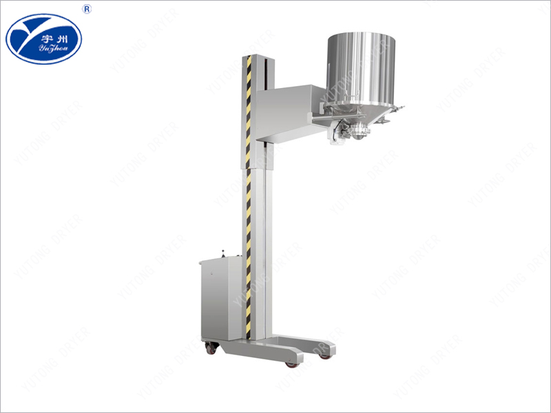 該機主要應用于方形不銹鋼周轉料斗的提升和加料。可與壓片機、混合機、制粒機等設備配套使用。廣泛應用于制藥、化工、食品等行業中。