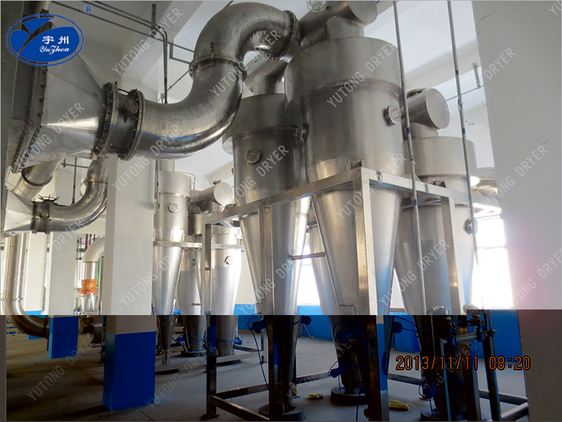 Окружающий воздух, прошедший начальную и промежуточную фильтрацию, продувается воздуходувкой сухой системы в паровой радиатор и нагревается до температуры, установленной в процессе. Затем он входит в сушильный концентратор с флэш - испарением и вместе с сухим фильтром, который подается в сухой хост через спиральный питатель, завершает процесс сушки теплоносителя в сухом хосте. Газоустойчивая смесь фильтруется мешковым пылеуловителем, а материал отделяется от газа в системе сушки и сбрасывается в систему сушки. Выхлопные газы выбрасываются в атмосферу из вентиляторов.
